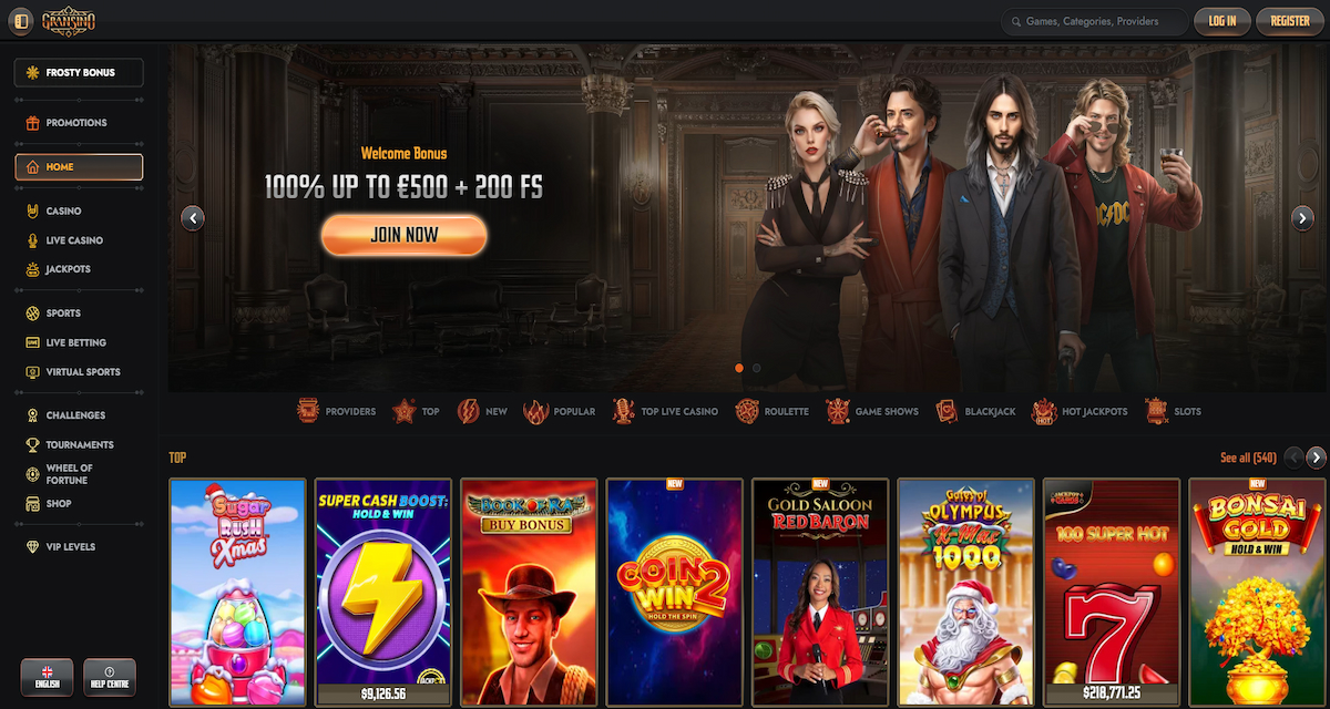 Gransino makes an impressive first impression with popular titles like Gates of Olympus, Sweet Bonanza, and Book of Dead. These are just a small slice of the platform’s massive library, which boasts over 10,000 games. For live casino enthusiasts, Gransino offers more than 600 tables, including favorites like Mega Roulette, Speed Baccarat, and Monopoly Live. Navigating through this vast selection is straightforward, thanks to user-friendly filters that allow sorting by provider, game type, volatility, and bonus features.