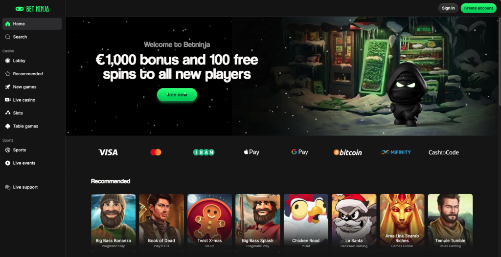 | Betninja | Sports + Casino bonus | 1–3 days | Cards, eWallets | 95–96% |