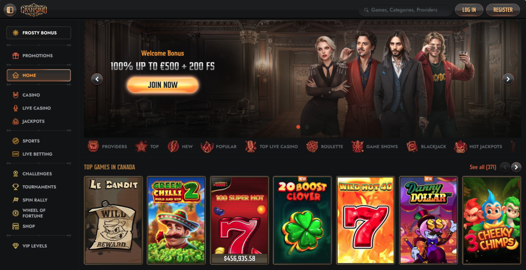 Slots and table games are supplied by providers such as Pragmatic Play, NetEnt, and Evolution. The sportsbook covers major international and Canadian sports.